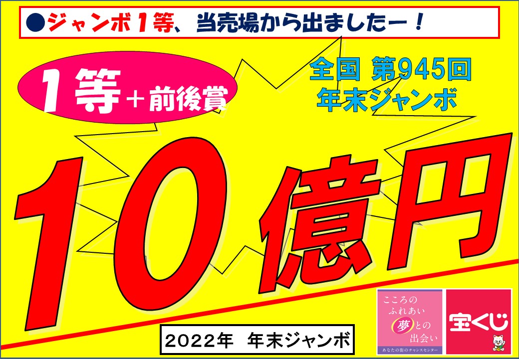 ジャンボミニでも 1等前後賞5千万円がセットで出ました!