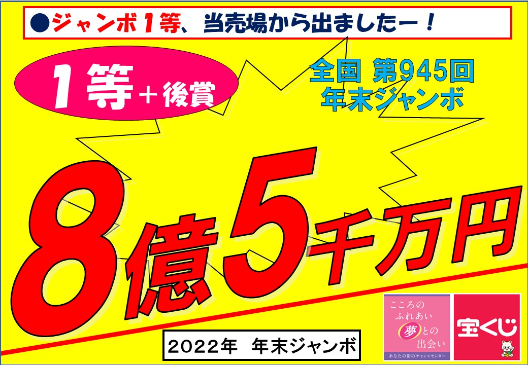 今回はケタ違い! ジャンボの本命 年末で1等+後賞で8憶5千万円です!