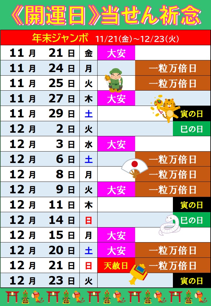 年末ジャンボ 開運日のお知らせ